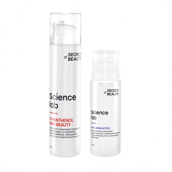 Дуэт включает в себя инновационную сыворотку "HYALURON ACTIVE" для интенсивной гидратации кожи, стимуляции синтеза гиалуроновой кислоты и улучшения овала лица и Крем "D-PANTHENOL MAX BEAUTY" для стимуляции процессов регенерации, устранения обезвоживания, повышения упругости и эластичности кожи. Применение продуктов в дуэте обеспечивает усиленную эффективность от каждого продукта.